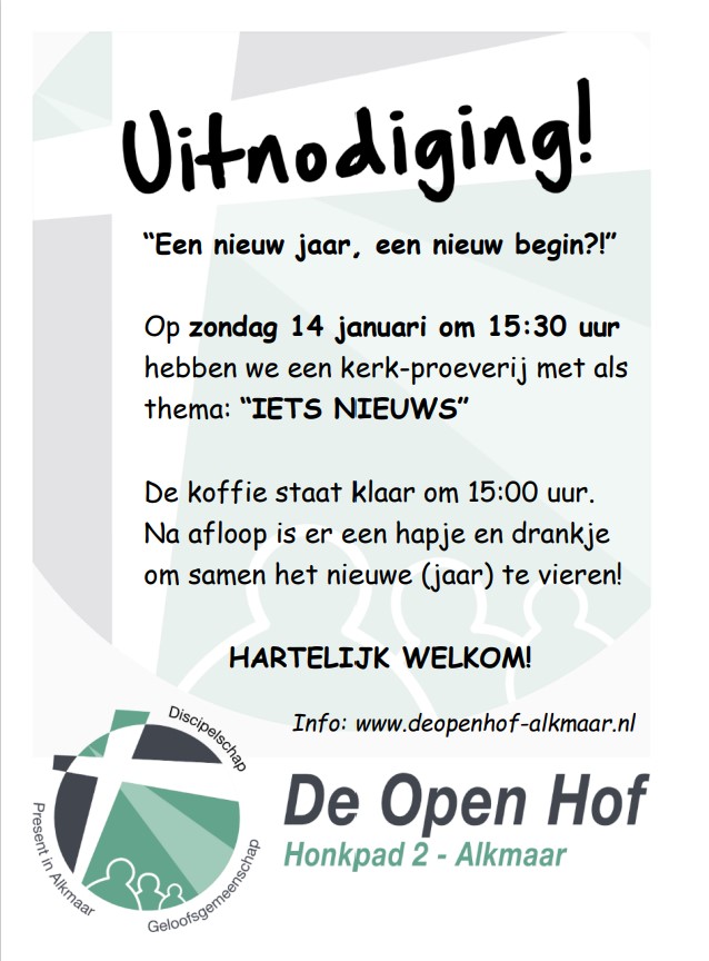 Op 16 maart verzamelen we om 12:00 bij de Open Hof en verdelen ons over de beschikbare auto’s. Ongeveer 17:30 zijn we terug en sluiten we de dag af door samen te eten. Wie als gemeentelid of als gast mee wil gaan met ons ‘gemeente-uitje’ op 16 maart kan zich daarvoor aanmelden bij Anita Abbring.